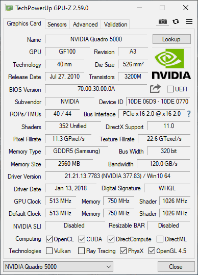 Quadro 5000 GPU-Z